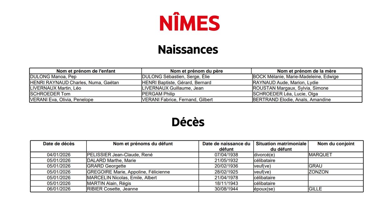 Nîmes : Naissances et décès du 6 janvier