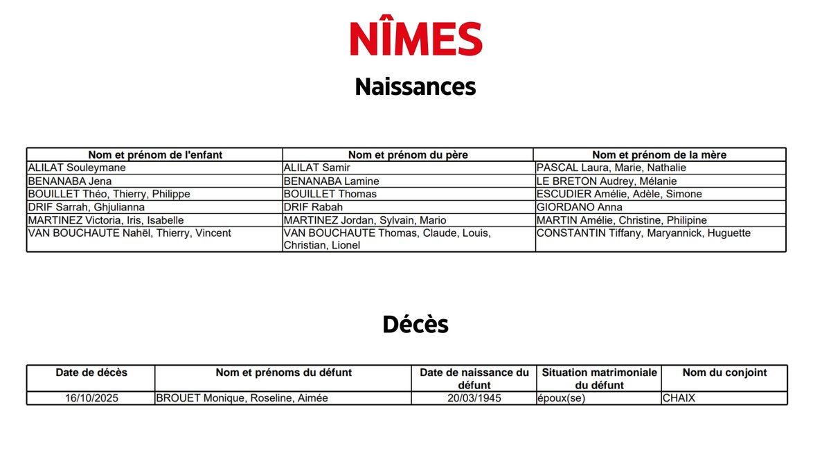 - Objectif GardTous les jours à 12h30, ne manquez pas l'état civil à Nîmes.