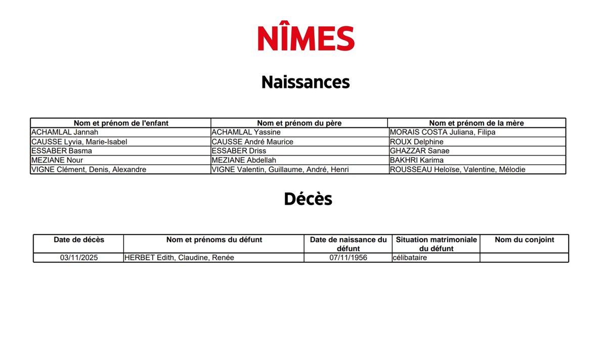 - Objectif GardTous les jours à 12h30, ne manquez pas l'état civil à Nîmes.