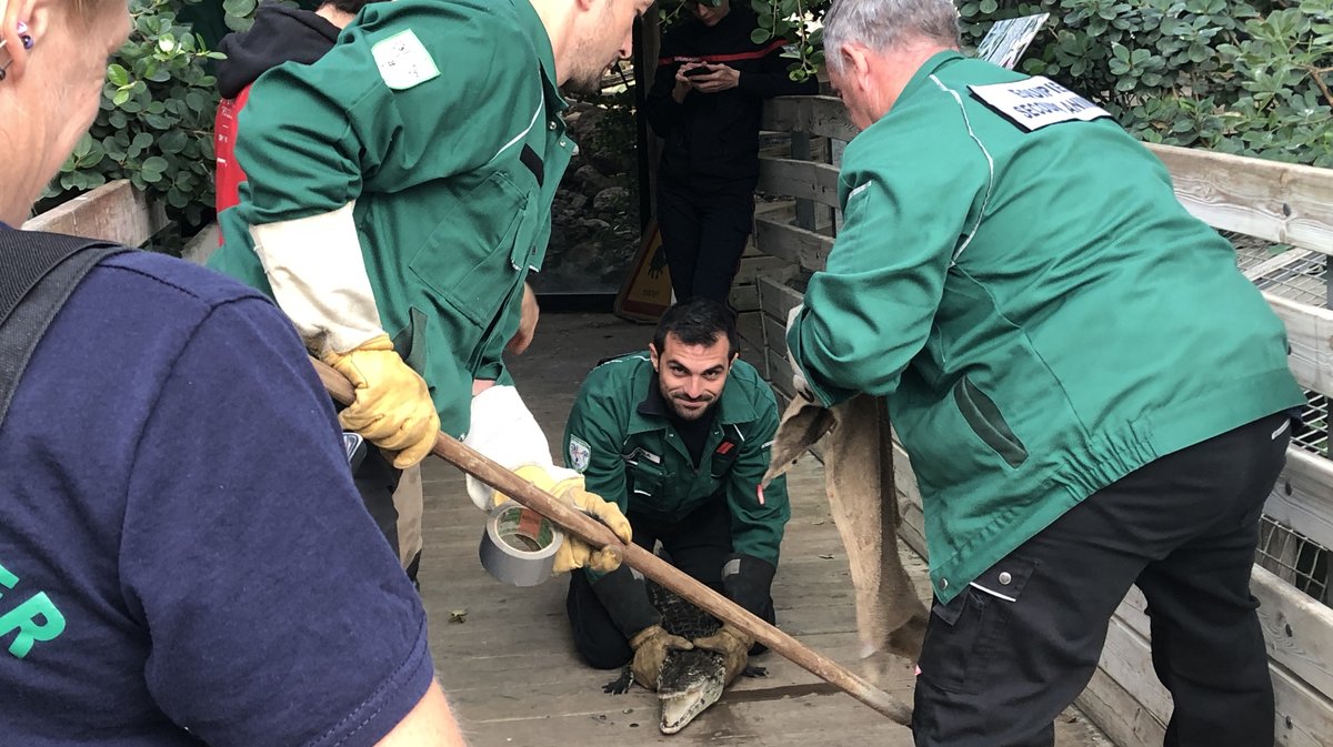 « Pour que le stress imposé aux animaux soit utile et dans leurs intérêts, chaque manipulation s’accompagne de soins ou contrôle, qui étaient programmés par nos équipes, on fait d'une pierre deux coups ! », précise Antoine responsable et chargé de projet à la Ferme aux crocodiles.
