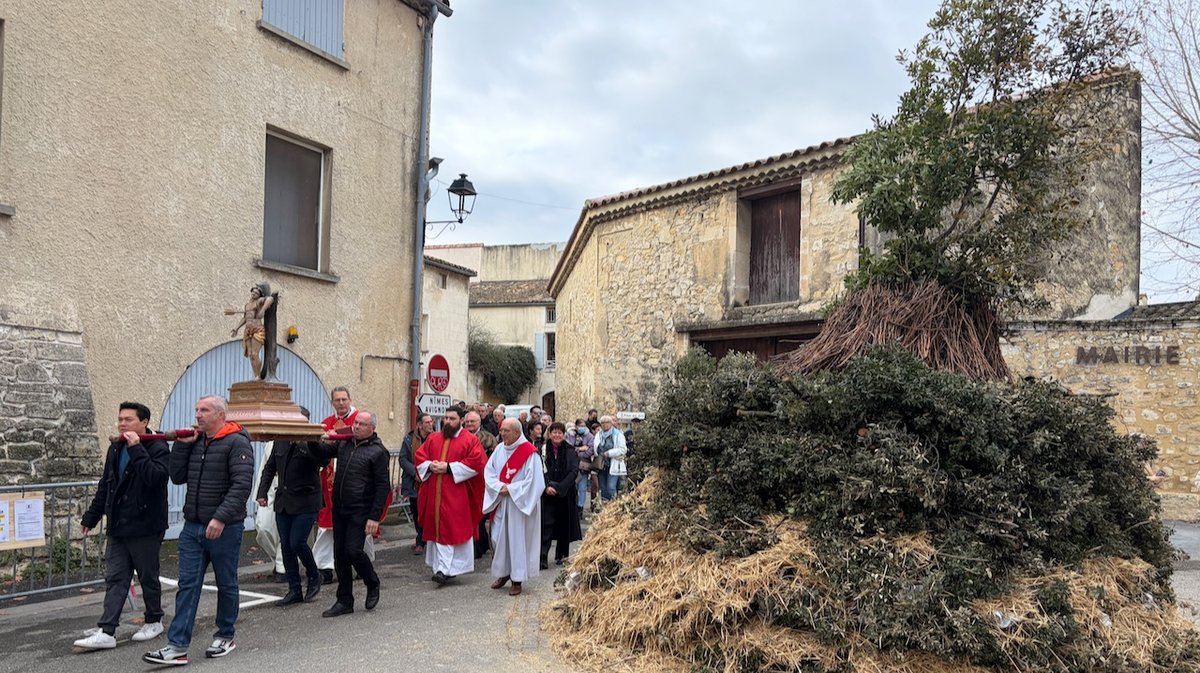 Une fête organisée par le Comité paroissial qui se déroule d’une manière immuable : une messe célébrée par le père Cyril Farwerck qui fait chaque année le plein, puis une procession dans les rues du village avant le point d’orgue, l’embrasement d’un grand feu de sarments au coeur du centre ancien.