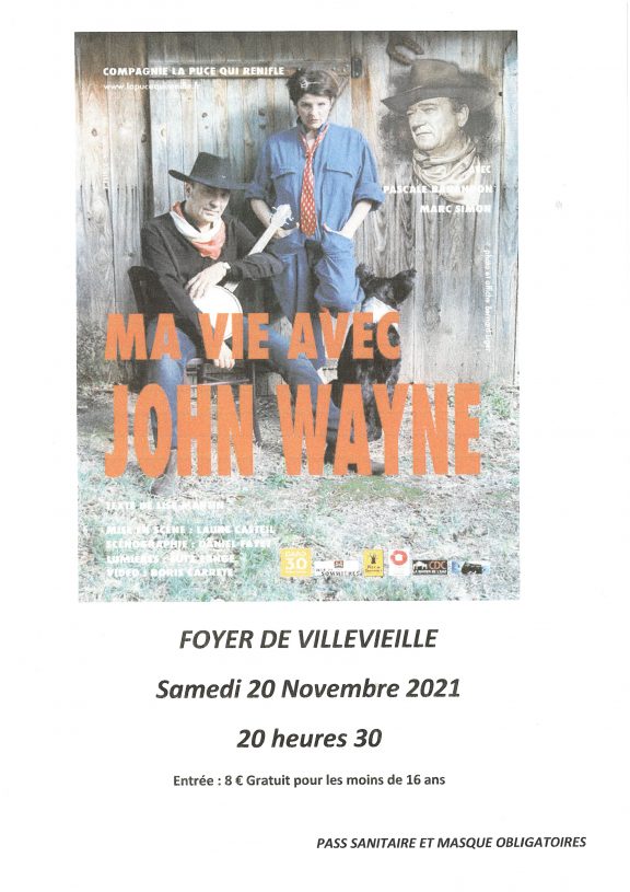 Spectacle ” Ma vie avec John Wayne” avec la compagnie La Puce qui renifle à Villevieille ce samedi 20 novembre 20h30.