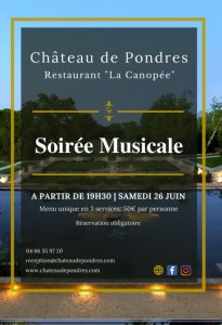 Soirée musicale au Château de Pondres. Villevieille - 26 juin