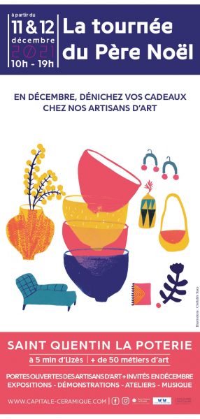 Les artisans d’art de Saint-Quentin-la-Poterie invitent des créateurs à exposer dans leurs ateliers-boutiques pour vous proposer un large choix de cadeaux pour les fêtes de fin d’année ! En décembre, dénichez vos cadeaux chez des artisans d'art !