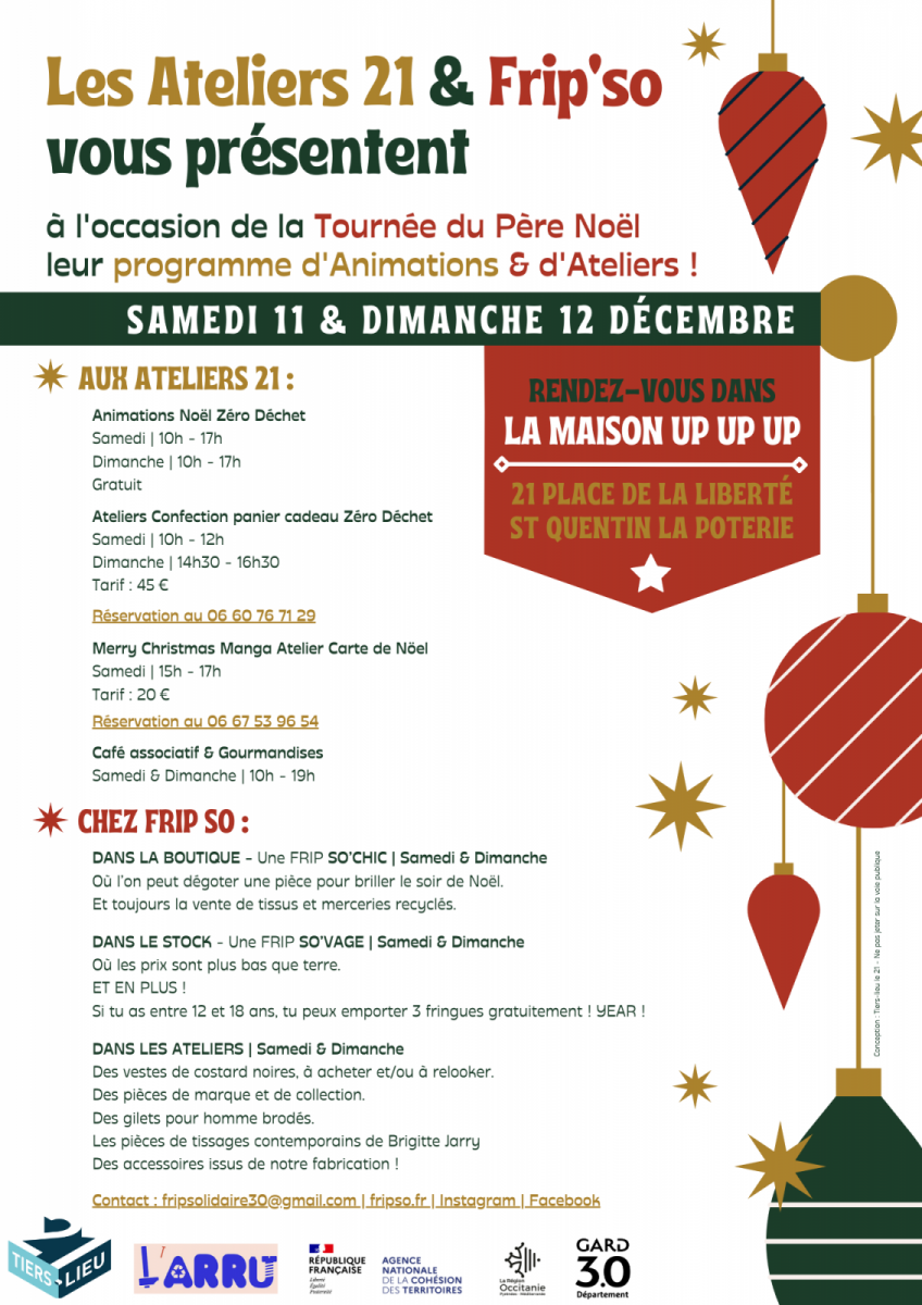 Les Ateliers 21 & Frip'so vous présentent à l'occasion de la Tournée du Père Noël leur programme d'Animations & d'Ateliers !