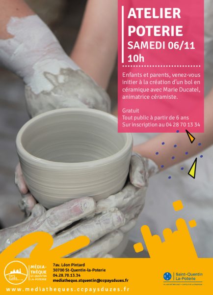 Atelier Poterie - Samedi 6 novembre - Saint-Quentin-la-Poterie