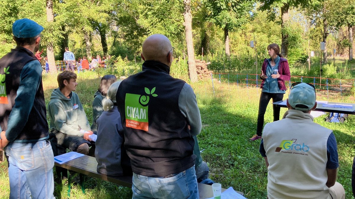 "Avec la présence des arbres, qu'est-ce qui change à votre avis ?", demande Camille Béral, ingénieure agronome chez Agroof, à un public de maraîchers, une élue de Barjac ou une animatrice du programme alimentaire de Montpellier. "Une compétition pour l'eau ou le soleil ; une baisse des températures et un effet sur le micro-climat", tentent deux participants.