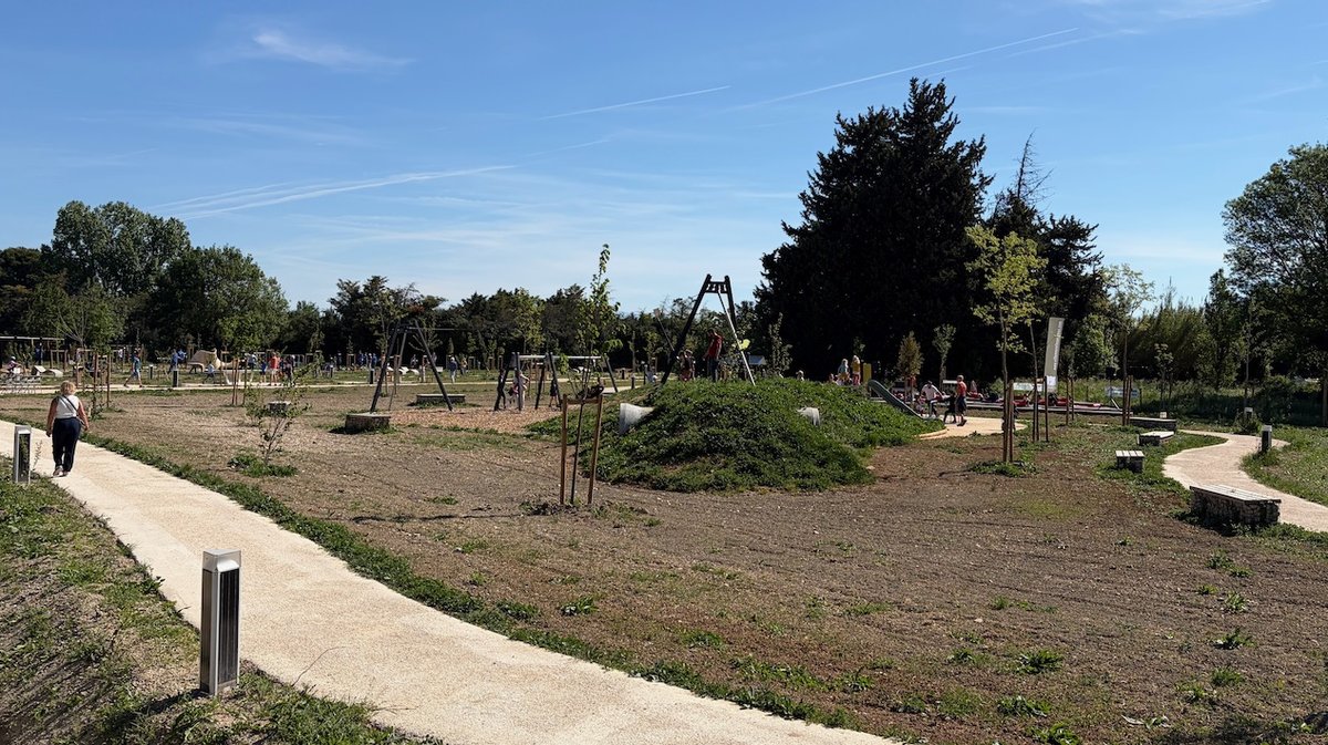 C’est « une nouvelle aire intergénérationnelle, pensée pour tous sans distinction d’âge, un espace de vie, de partage, de convivialité », pose la maire de Villeneuve Pascale Bories, au moment de couper le ruban, après 17 mois de travaux, de ce qui était l'un des principaux projets du mandat précédent. Inauguré ce samedi sous un beau soleil printanier, ce nouveau parc « incarne les valeurs de lien social, de solidarité entre les générations et de bien vivre ensemble », poursuit l’édile.