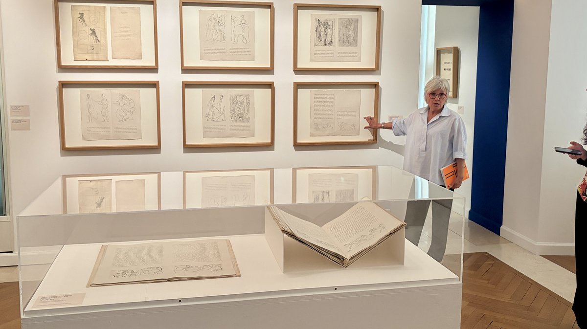 Dans ces années folles, il cherche le mouvement dadaïste et rencontre Picasso, avec lequel il va travailler. Ce qu'il fait également avec Giacometti, Miro, Matisse, Max Ernst ou Delaunay. "D'ailleurs, dans les expositions de Picasso ou Giacometti, il y a toujours un ou deux Iliazd". On passe ensuite de la salle dédiée aux portraits de l'artiste aux plans de masse architecturaux qu'il a réalisés à la façon d'un architecte. "Et même un travail d'archéologue, en reconstituant ce qui s'est effondré", s'enthousiasme Françoise Nicol. Une façon "d'aller chercher ce qui a disparu et d'y redonner vie".