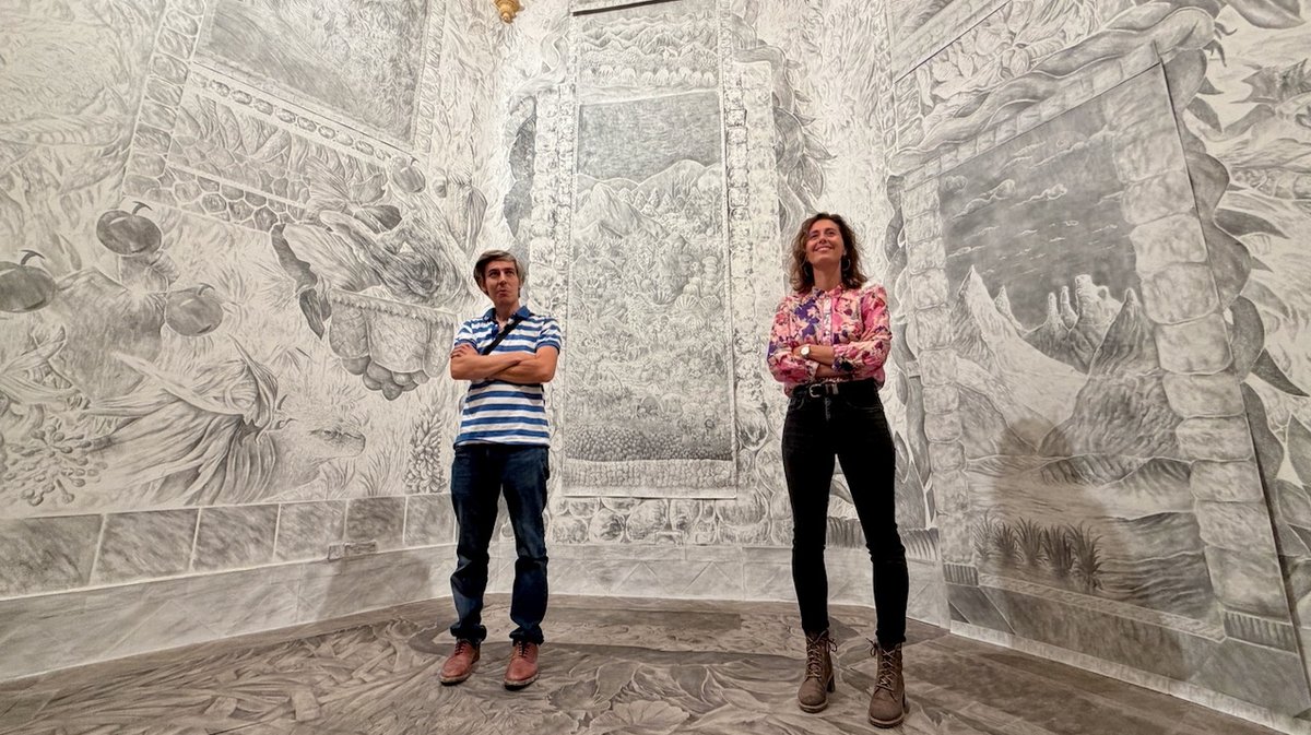 C’est une oeuvre monumentale, qui couvre tous les murs de la chapelle et le sol, où la faune et la flore se déploient, où les formes se font réalistes ou oniriques. Bienvenue dans la « Chapelle botanique » de l’artiste niçois Quentin Spohn, fruit de huit semaines de résidence artistique. « Je ne connaissais pas cet espace, c’est un ancien lieu religieux et pour moi c’est spécial de conduire un projet ici, c’est inspirant », commence l’artiste au moment de dévoiler son travail.