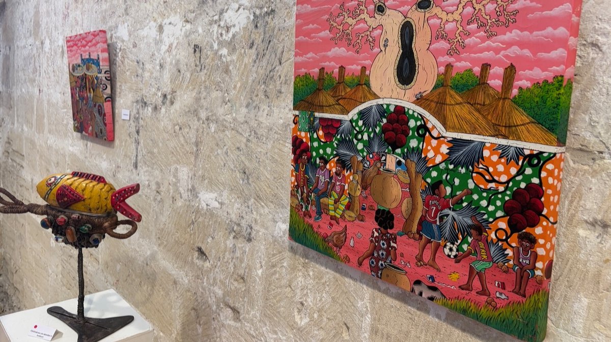 À ses côtés, on retrouve le peintre Segson, lui aussi originaire de Ouagadougou. Ses tableaux sont des scènes de vies colorées. « Je travaille beaucoup sur la couleur car le monde actuel est très malade, on a besoin de joie de vivre, la couleur nourrit l’âme, donne de l’espoir », affirme-t-il. Les sourires sur les personnages de ses peintures sont dans cette même veine. Une série de « paysages futuristes » mêle le côté traditionnel à la modernité, mais font toujours figurer un baobab, « symbole de la sagesse africaine », précise-t-il. Sauf dans un de ces paysages, ce qui pose une question : « Que va-t-on devenir sans baobab dans le futur ? »