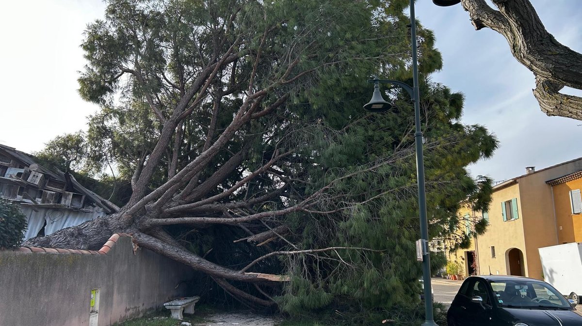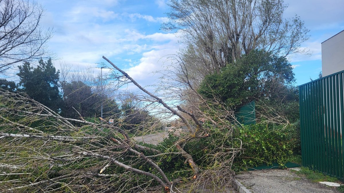 À Arles, au collège Morel, à Trinquetaille, un arbre n'a pas résisté à la violence du vent. Déraciné, il est tombé sur la chaussée emportant avec lui la clotûre métallique de l'établissement. Ce matin, il était couché en travers de la rue Gérald-Rey.