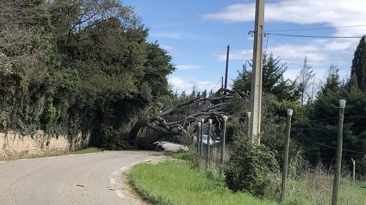Sur la route reliant Jonquières Saint-Vincent à Comps, un arbre a été arraché par le vent ce dimanche matin, vers 11h. Et s'est couché en travers de la route.