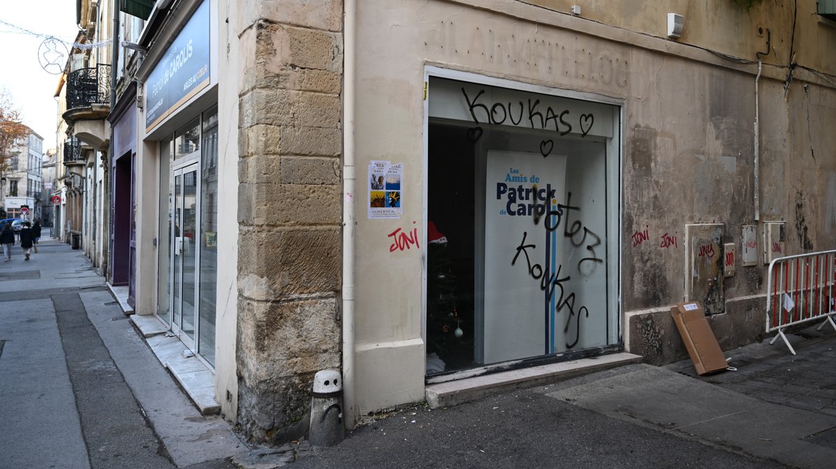 « Koukas, votez Koukas » Ces inscriptions, accompagnées de cœurs, ont été découvertes, ce dimanche 14 décembre, sur une des vitres du QG fraîchement inauguré de Patrick de Carolis, côté rue Tour du Fabre.
