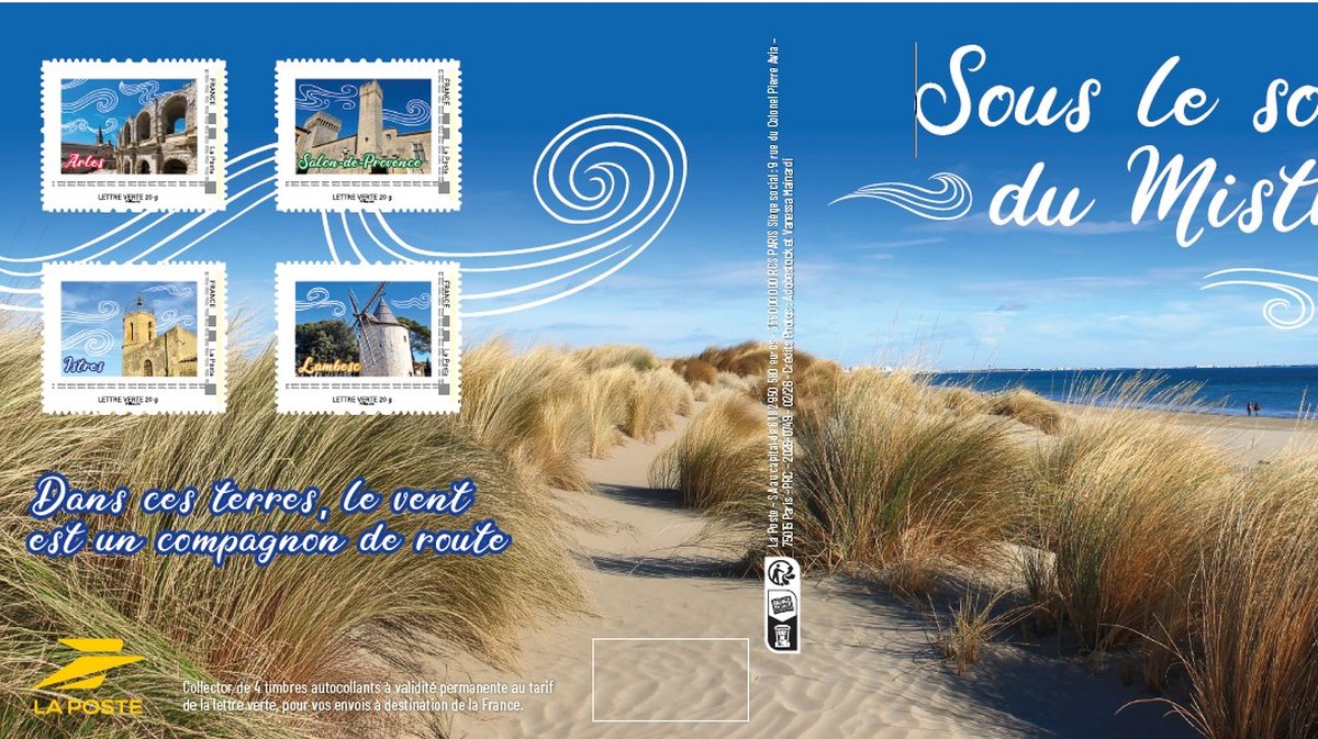 À travers un collector de quatre timbres, intitulé "Sous le souffle du Mistral", La Poste rend hommage au vent emblématique de la Provence. Réalisé en édition limitée, ce collector met en lumière le Mistral dans quatre lieux "où son souffle façonne aussi bien la nature que les architectures et les paysages", explique-t-on du côté du groupe La Poste. Ainsi on retrouve les arènes d’Arles, mais aussi le château de l’Empéri à Salon-de-Provence, Notre-Dame-de-Beauvoir à Istres et le moulin à vent de Bertoire à Lambesc.