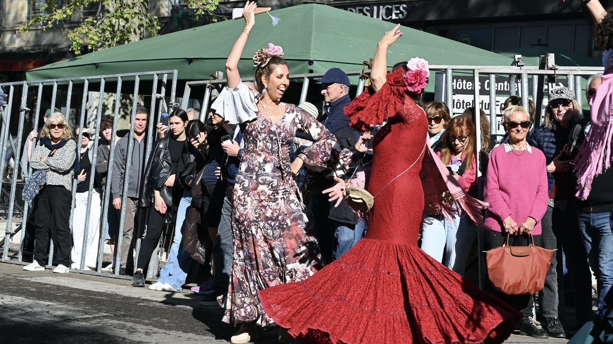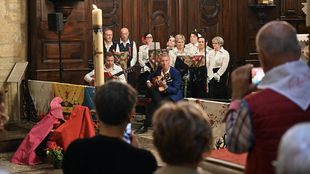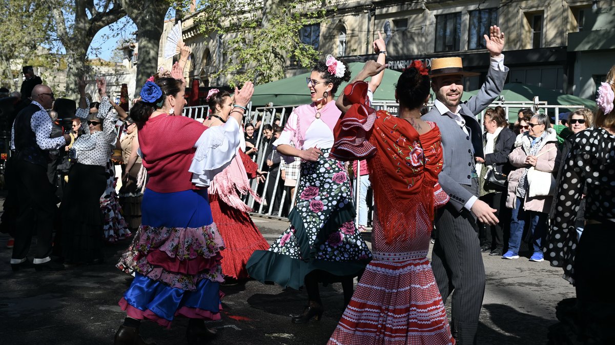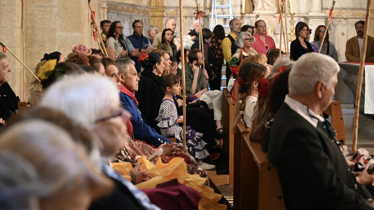 Dès 10h, calèches, cavaliers et sévillanes ont défilé dans les rues de la ville, une animation orchestrée par le club taurin Les Andalouses. L'occasion, entre deux airs de sévillane, d'annoncer la traditionnelle "Misa Flamenca". Une homélie inspirée de la messe sévillane, célébrée, un peu plus tard dans la matinée, par le curé Don Louis-Gabriel Eschbach, à Notre-Dame de la Major, une première. L'église affichait complet.