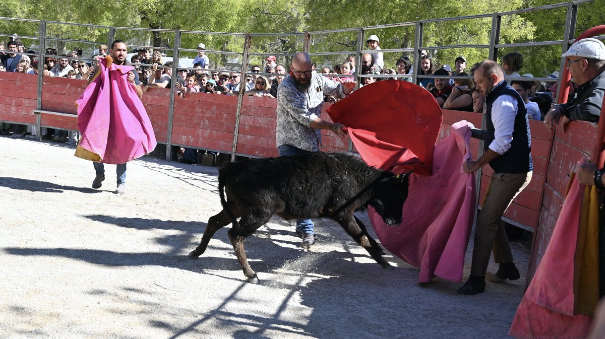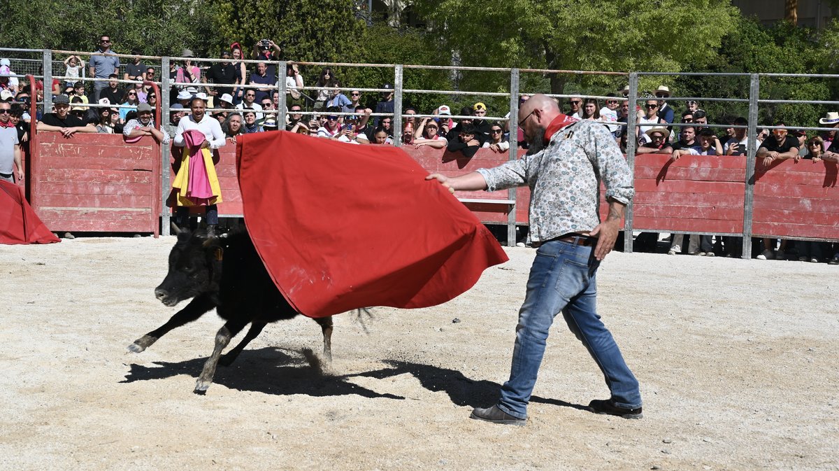 Parmi toutes les animations proposées ce dimanche matin, le comité de la feria d'Arles a organisé sa grande capea. La plus belle des manières, en leur permettant de prendre la cape et la muleta, de saluer et remercier les bénévoles à l'œuvre pour rendre la fête plus belle. L'un d'eux a plus particulièrement été mis à l'honneur, Ali Kodja. Ce dernier a été nommé président de cette grande capea avec en piste les anoubles de la manade Navarro et une vache espagnole de la ganaderia El Campo.