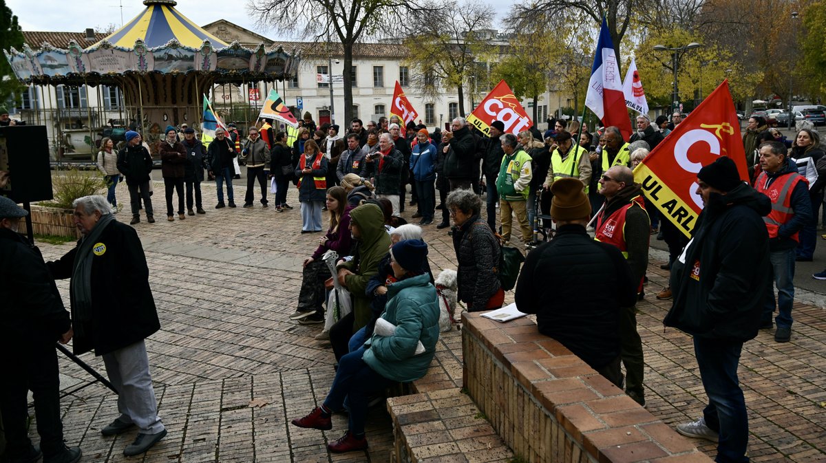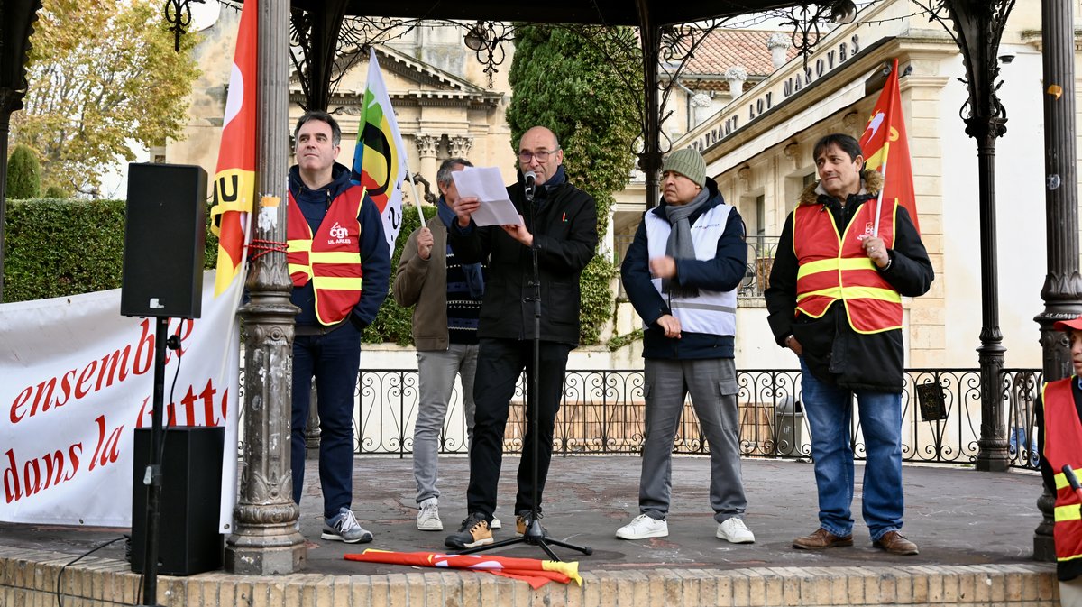 « Le gouvernement prévoit une année blanche, ça nous met dans une colère noire. » Une centaine de personnes s’est réunie à Arles ce mardi 2 décembre, journée de mobilisation et de grève nationale contre le budget 2026. Au micro, sur la scène du kiosque à musique, Alain Le Luc, professeur de SVT au lycée Montmajour et représentant SNES-FSU, a dénoncé un texte de loi aux « conséquences catastrophiques pour les travailleuses et les travailleurs, les services publics et pour l’avenir de notre pays. » Quant au renoncement du gel des pensions de retraites et des minima sociaux, les manifestants pointent une absence de garanties.
