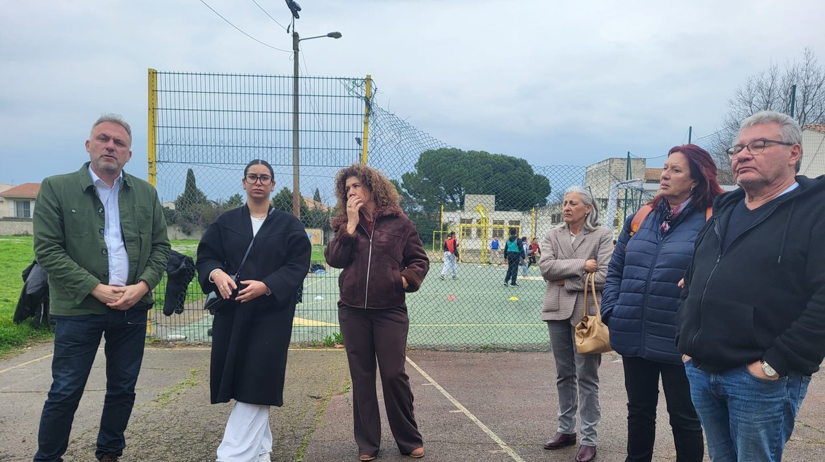 Pendant ce temps d'échanges avec les journalistes, une classe de l'école voisine avait un cours d'éducation physique. Petit échauffement sur le stade, plus proche du champ en friche que du terrain de course, puis séance de football, sans filet dans les cages donc. "La direction de l'école a signalé à la mairie que les grillages étaient arrachés il y a plusieurs mois", indique Nicolas Koukas. Assurément, si le message est passé, il n'a pas été entendu. "On ne parle pas d'investir des millions d'euros là pourtant, ajoute le candidat de L'Union pour Arles. On parle juste de remettre en état un grillage, de mettre un filet pour que les gamins puissent jouer au foot, et de remettre un portail pour éviter que le lieu ne soit squatté la nuit." Remettre en état simplement, et de fait en sécurité.