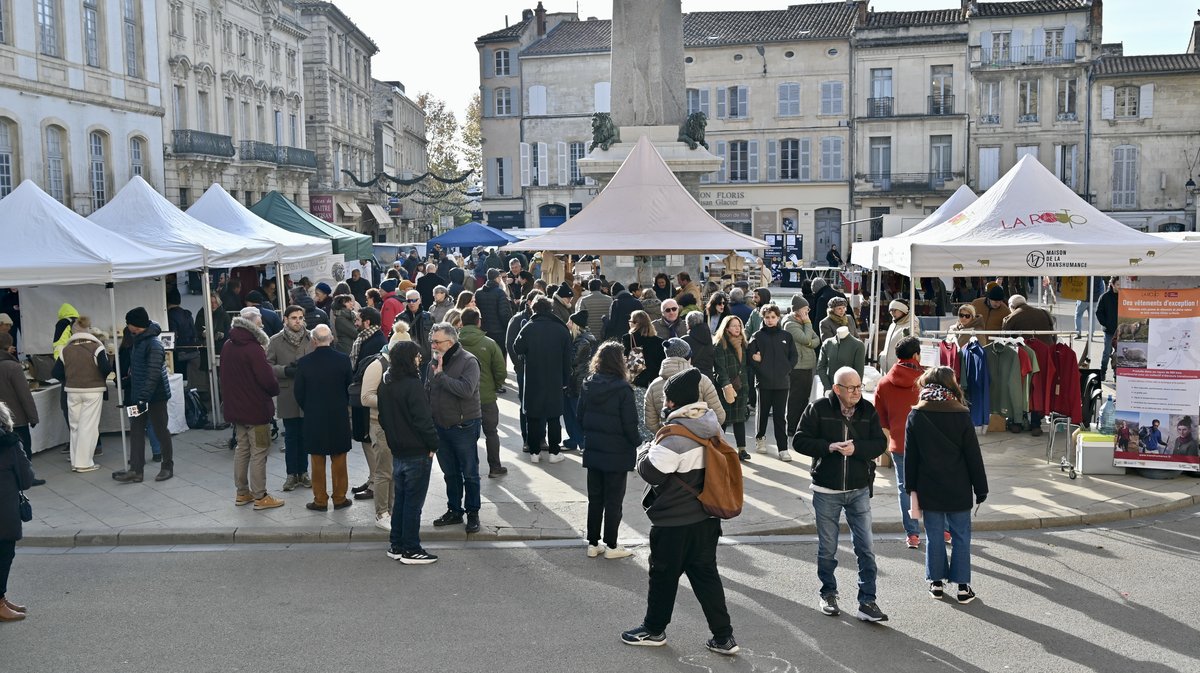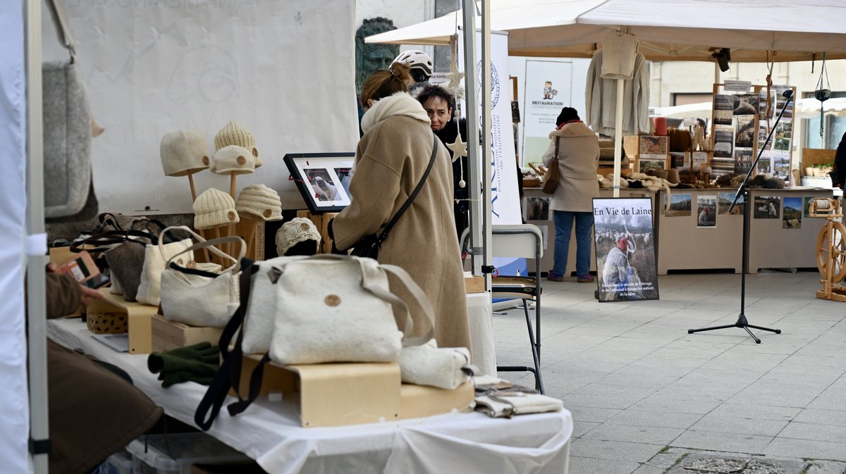 Le village de la laine installé sur la place de la République, face à l'hôtel de ville d'Arles.