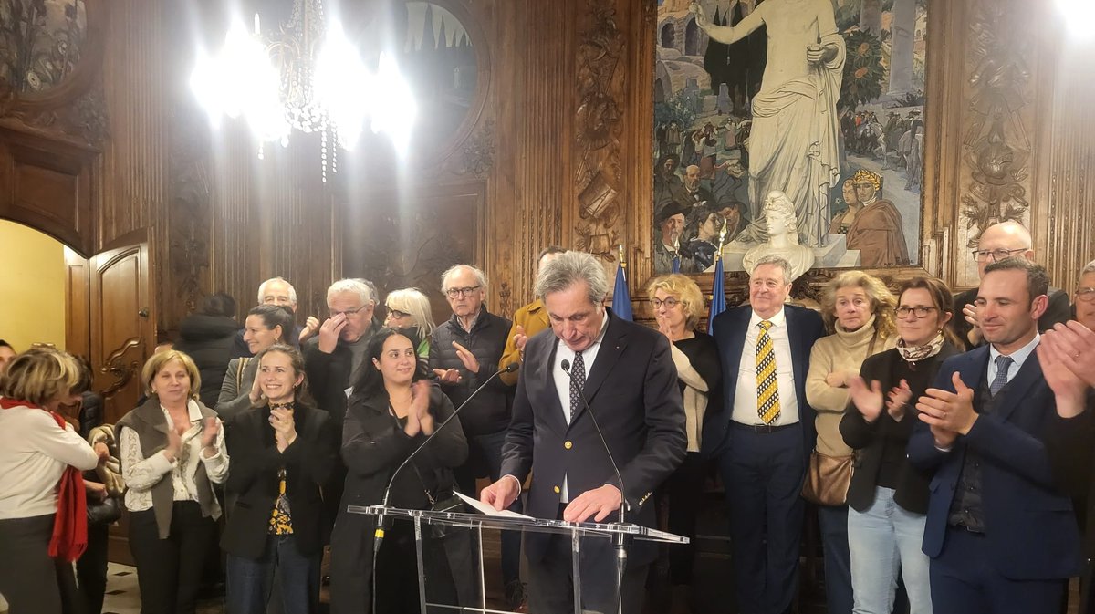 Les résultats définitifs sont tombés en mairie à 21h30. Un quart d'heure plus tard, Patrick de Carolis, entouré de ses colistiers, prenait la parole en salle d'honneur, face aux journalistes et à ses soutiens. Après avoir remercié les électeurs qui l'ont placé "en première position dans 29 bureaux de vote sur 35", le maire sortant a rapidement redirigé son discours sur la prochaine échéance. "À l’issue de ce premier tour, une évidence s’impose : une très large majorité d’Arlésiens refuse le retour des communistes à la tête de la Ville, a-t-il déclaré. Seul l’éparpillement des voix au 2e tour pourrait le provoquer."