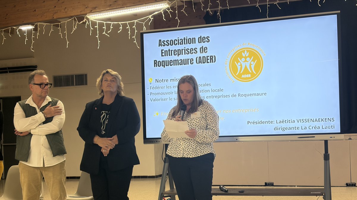 La présidente de l'A.D.E.R, Laetitia Vissenaekens (L'Association des Entreprises de Roquemaure) a pris la parole, en appelant à fédérer les entreprises locales : "Ensemble, faisons rayonner nos entreprises et nos territoires". Parmi les autres acteurs présents figuraient France Travail Pro, la CCI du Gard, le Grand Avignon, ainsi que l'Association des Entreprises de la ZI de l'Aspre. Le public était invité à se déplacer entre les stands pour parler de leurs situations, de leurs préoccupations, afin de trouver des solutions, pour que leurs affaires fonctionnent.