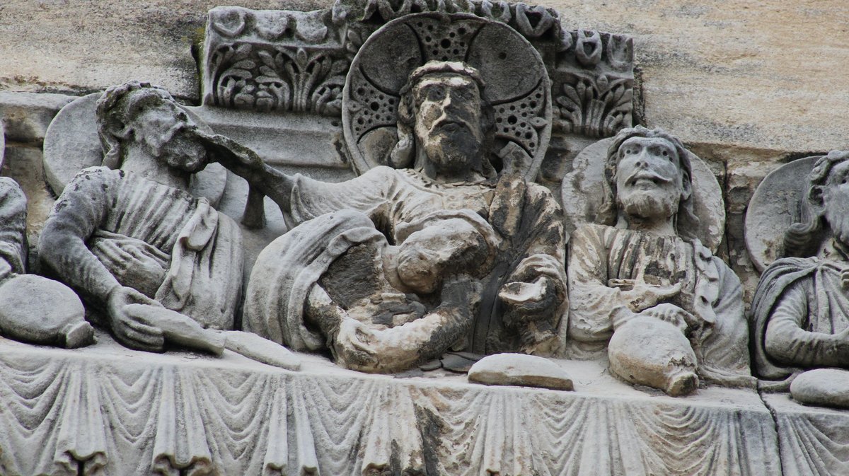 La frise représente les différentes scènes de la Passion du Christ : le lavement des pieds, la Cène – "une Cène d’artistes et non pas théologique", précise Jacques Jaume – ou encore la visite au tombeau etc. Le conférencier souligne toutefois une particularité liée au remontage des blocs : "Ceux qui ont monté la frise se sont trompés, ils ont mis la visite au tombeau avant les femmes qui achètent les épices." étaient destinés à honorer et à embaumer le corps du Christ. "Mais le fait qu’il y ait eu une erreur rend aussi cette frise intéressante", complète Jacques Jaume. Il relève également la représentation du Christ donnant la bouchée à Judas, "une interprétation théologique qui permet de dater l’œuvre". Il établit un parallèle avec la frise de la cathédrale de Modène, en Italie, située sur un jubé à l’intérieur de l’édifice.