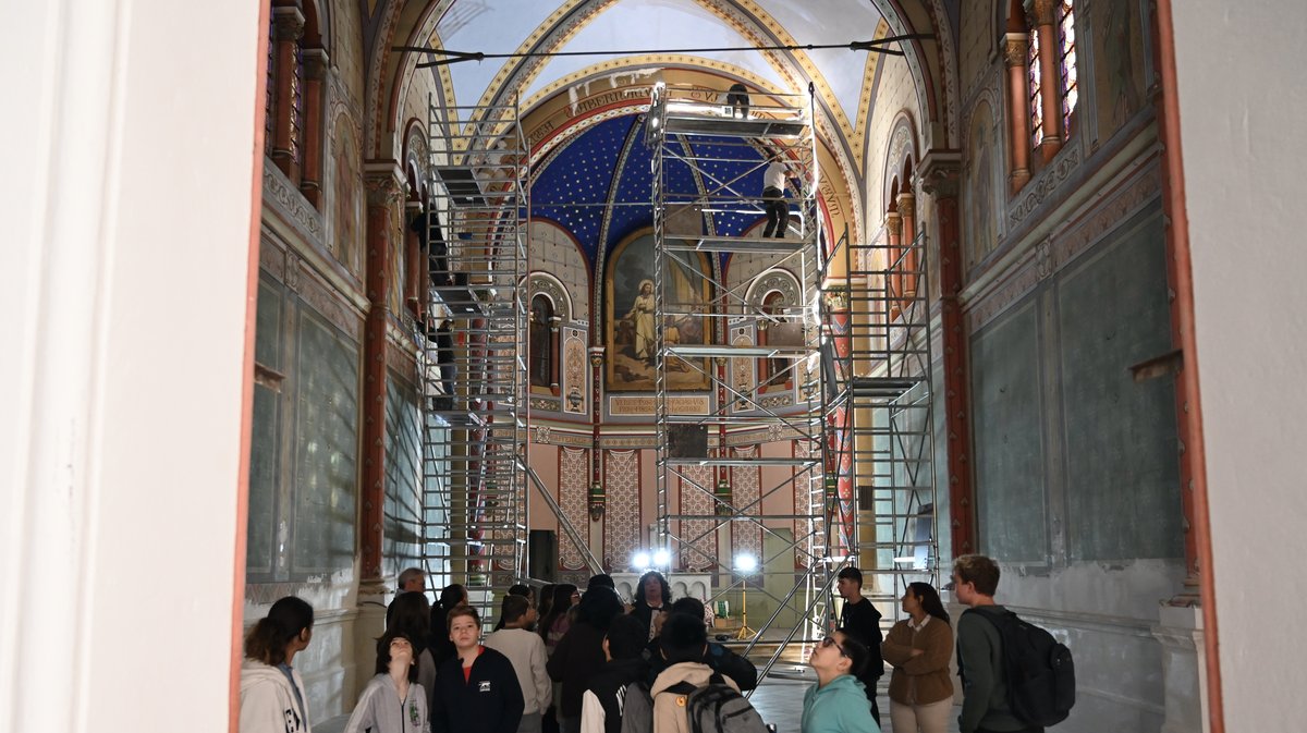 Jeudi dernier, des élèves de 5e accompagnés de Véronique Andréo, adjointe en pastorale scolaire, ont pu se rendre compte de l’ampleur, mais aussi de l’avancée de la restauration, une sorte d’« avant-après » mise en évidence par la partie du chœur, achevée après un mois et demi de travaux. L'opération se poursuivra jusqu'au mois de décembre, les statues représentant Saint Joseph, la Vierge Marie, Sainte Thérèse, le Curé d’Ars et le Christ pourront alors retrouver leur emplacement. Certains vitraux seront restaurés, ainsi qu'une partie du sol.