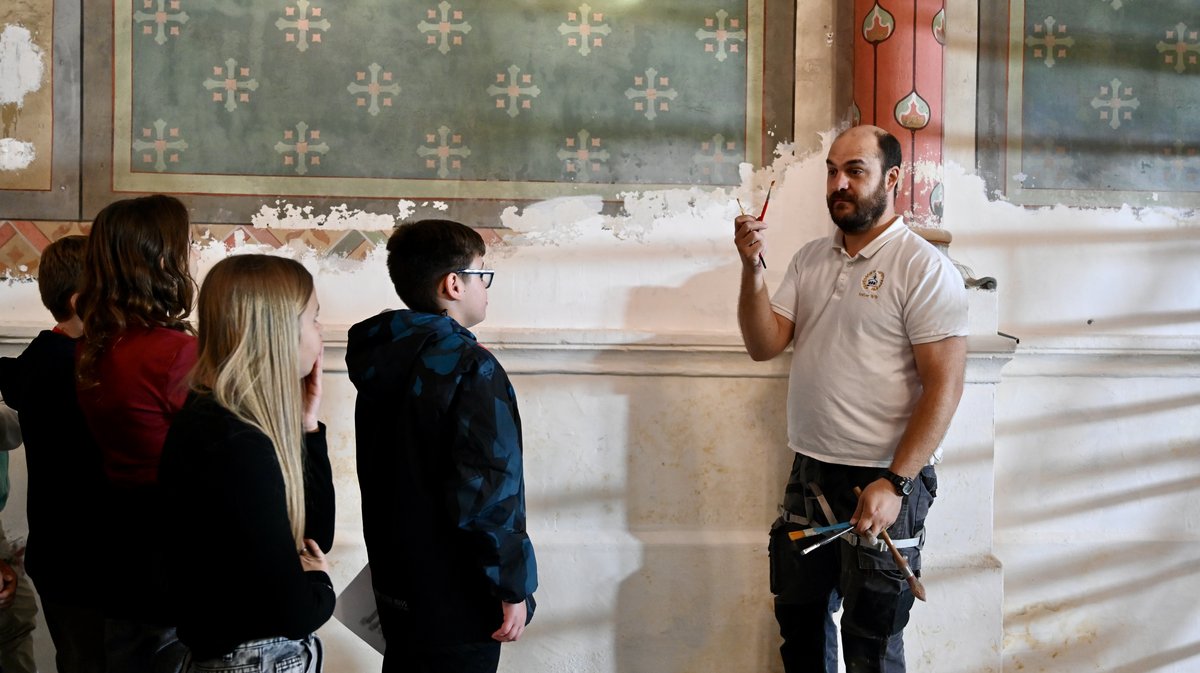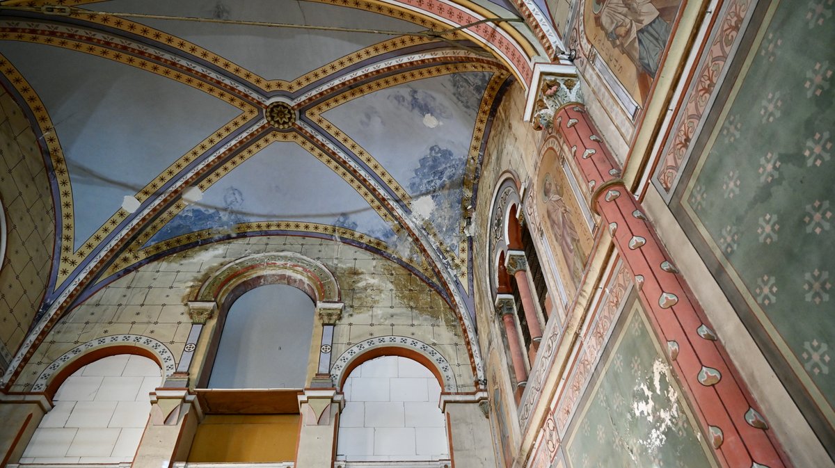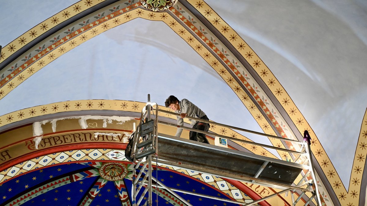Petit à petit, les plafonds et murs reprennent des couleurs, dévoilant à nouveau leurs motifs floraux et croix colorées typiques du XIXᵉ siècle. Les derniers travaux de restauration de ce type remonteraient à une centaine d’années. Mais les infiltrations d’eau dans les murs bétonnés avaient peu à peu dégradé tous les décors. Une partie du plafond est également marquée de quelques traces noirâtres.