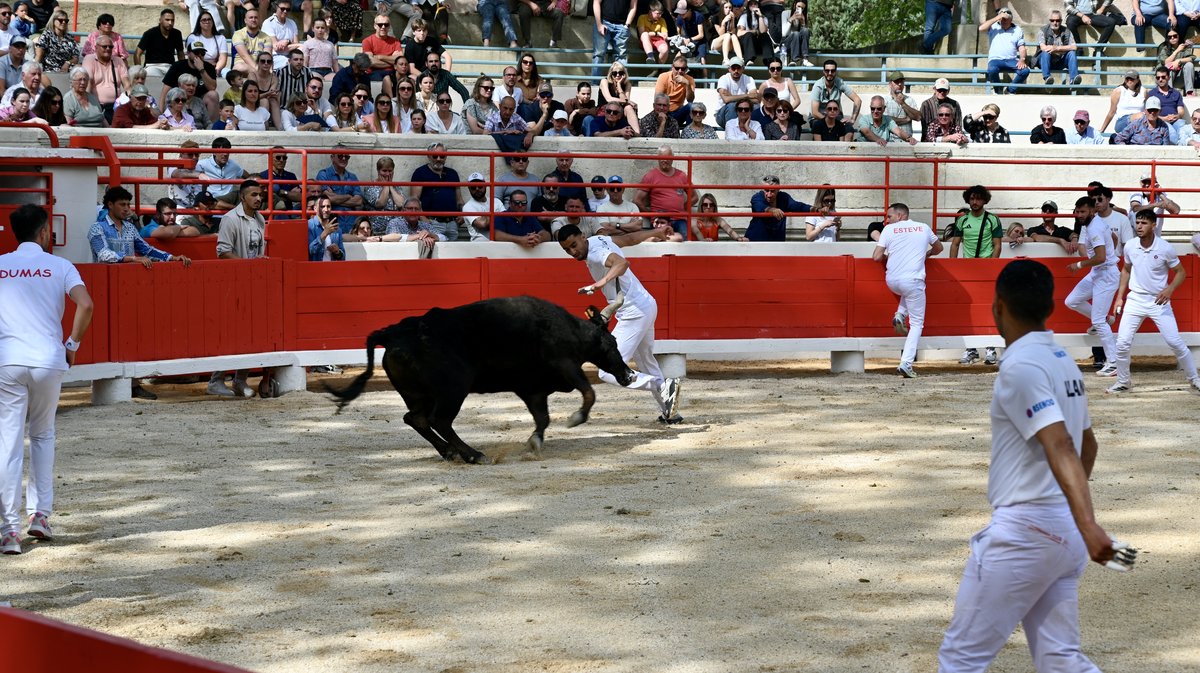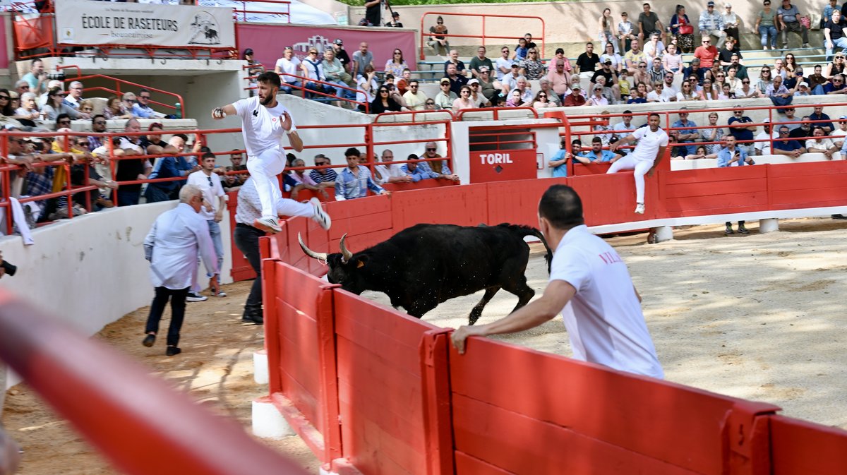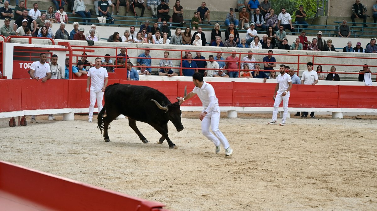 De même pour Gregaou de la manade Rambier-Cavallini, 11 ans, capricieux à droite, qui a précédé Ripart de la manade Didelot, vainqueur du Muguet d'Or 2025. Les points de la première ficelle primée à 600€ ont été attribués à Quentin Ayme. Le jeune cocardier, Islero de la manade Nicollin, 8 ans, a fait le spectacle avec de nombreux sauts de barrière, gardant ses ficelles jusqu'au bout. Grosse frayeur dans les gradins et pour Quentin Ayme, poursuivi par Camisard jusqu'en contre-piste. Après une chute, le raseteur s'est retrouvé nez-à-nez avec le cocardier de la manade Paulin, s’échappant à toute hâte pour éviter le pire. Et il a été évité de justesse.