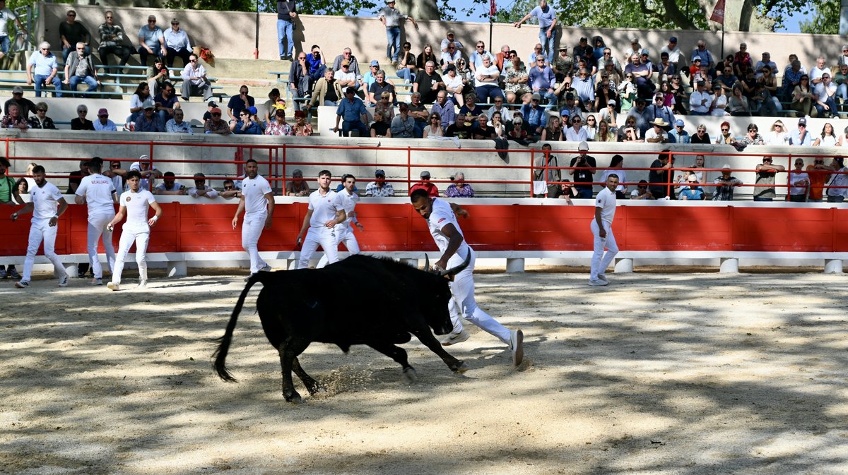 Les spectateurs ont ensuite assisté à une belle entame de saison placée sous la présidence d'Anouar Balti, avec des actions et charges remarquables de certains cocardiers notamment Galaad sur Fayssal Allam, Camisard sur Ismaël Oukharti ou encore et entre autres, Pablo sur Amine Chekade. Galaad de la manade Lagarde a ouvert le bal. Le taureau âgé de 15 ans effectue sa dernière saison. Il est rentré au toril avec sa deuxième ficelle, la première ayant été levée par Léandro Leal. Santorin de la manade Saumade, 12 ans, foulait quant à lui le sable des arènes de Beaucaire pour la première fois. Si la cocarde et les deux glands ont rapidement été décrochés, les ficelles étaient toujours en place à l'issue de son quart d'heure.