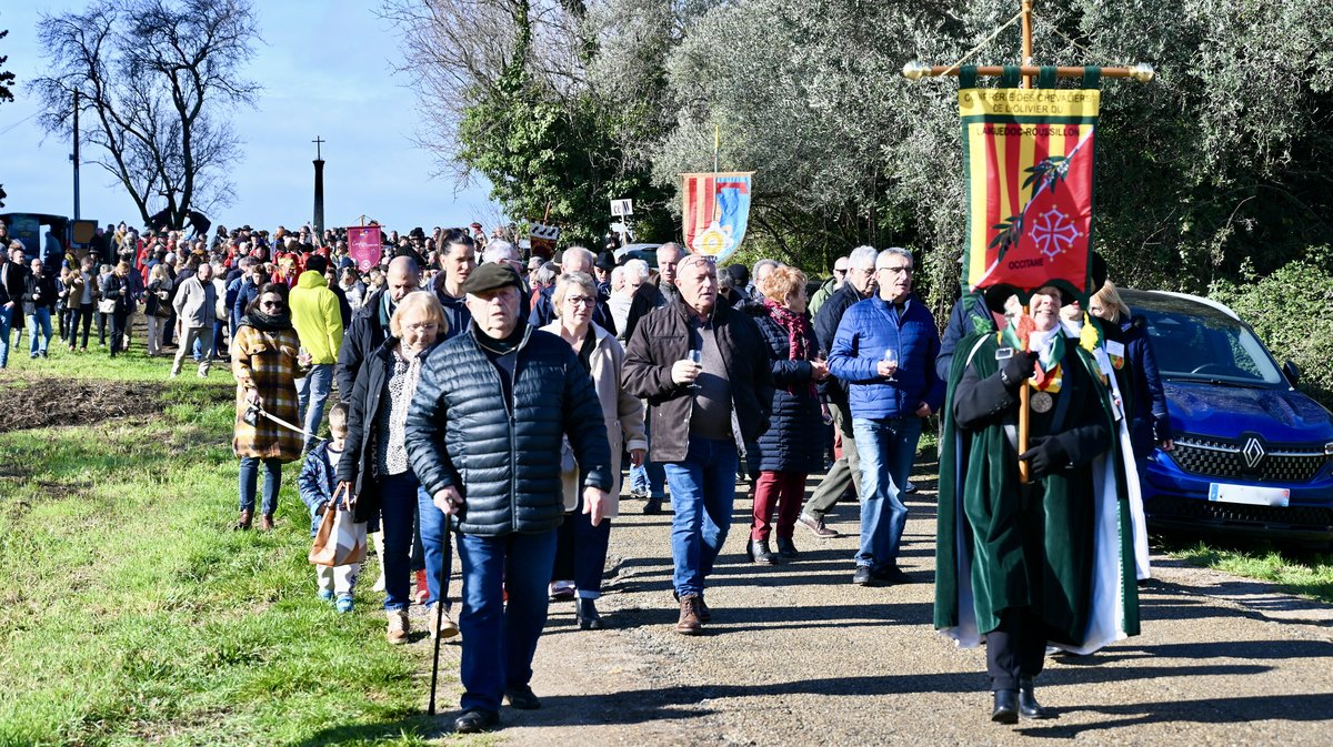 Une accalmie dans le ciel. Les Amis de la Saint-Vincent n'en demandaient pas plus. Un vœu exhaussé, le soleil était de la partie dimanche, jour de fête à Jonquières-Saint-Vincent, en l'honneur du saint patron des vignerons. Comme le veut la tradition, la 36e édition s’est ouverte par une messe pittoresque dans l’église de commune, au cours de laquelle les jéroboams ont été bénis. Puis le cortège - composé de nombreuses confréries (celle des Mange-Tripes, de la Violette, des Chevaliers de l'Olivier, les Consuls de Beaucaire et de la Terre d'Argence...), des membres de Li Cigalou jounquieren, entre autres groupes de musique et folkloriques, d'Arlésiennes, d'élus du territoire et de curieux - a relié la cave coopérative à la Croix de Peïre Fioc. Une jolie farandole emmenée par le Beaucairois Jean-Pierre Brun et ses deux bœufs Rubis et Roucas, 700 kg chacun, tout de même.