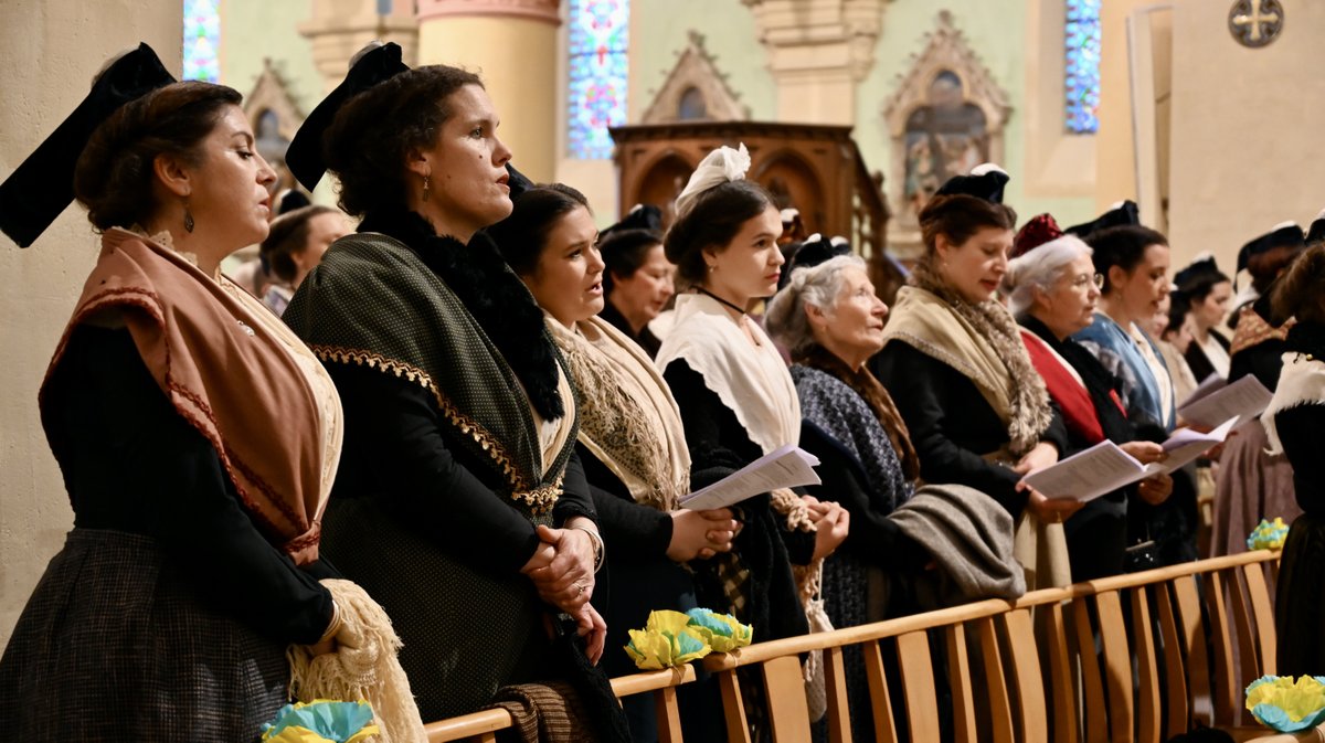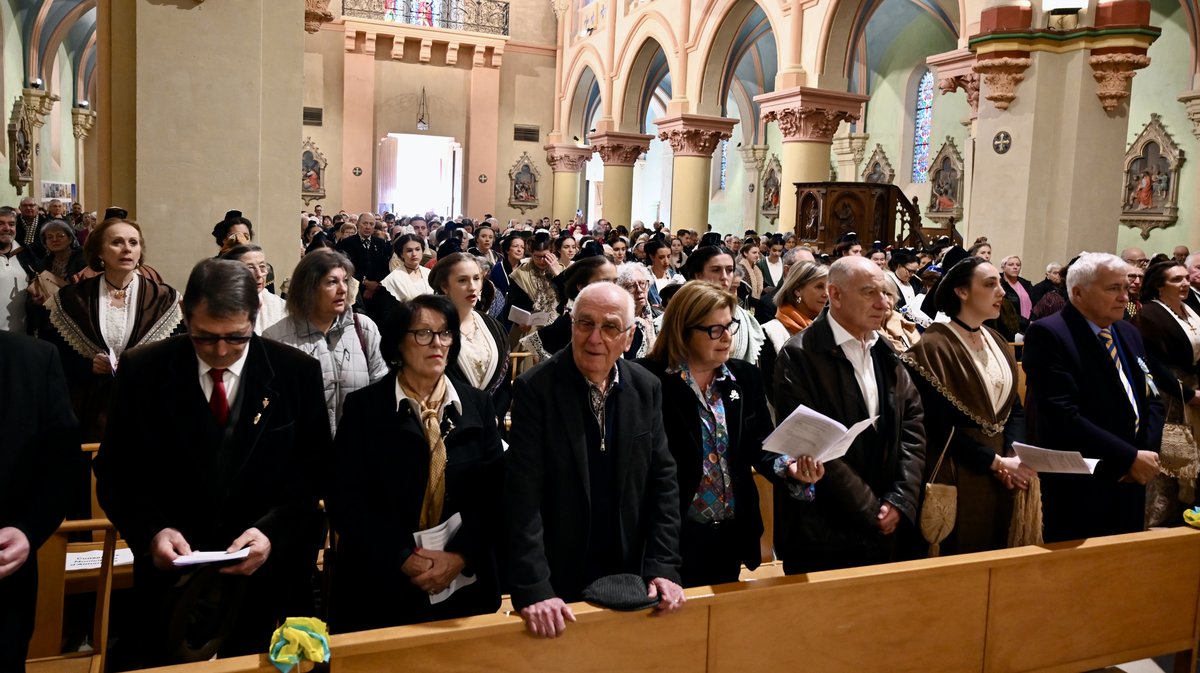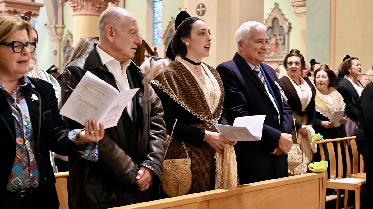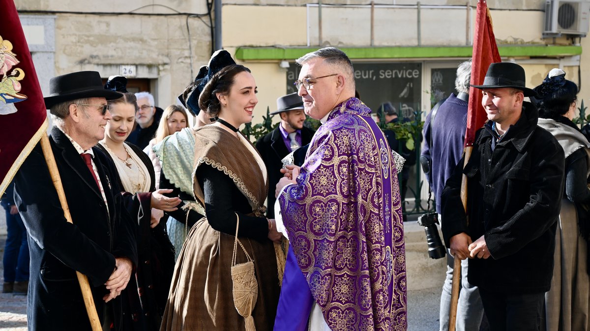 Après le défilé, demoiselles et dames en costume, membres de la Nacioun Gardiano et de la Confrérie des gardians, se sont retrouvés devant l’église Saint-Saturnin. Une église bien remplie pour la célébration de la messe des gardians en provençal. Puis la bénédiction par l'abbé Noblet des "234 chevaux", selon un spectateur attentif, sur la place de la mairie.