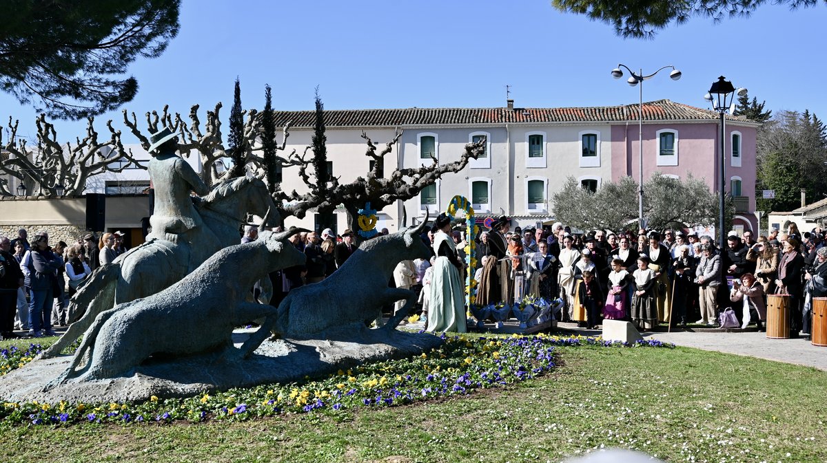 Année après année, la tradition perdure. Ce dimanche 1er mars, Aimargues a accueilli gardians, groupes folkloriques, représentants et défenseurs des traditions camarguaises et provençales, ainsi que bon nombre de curieux, pour rendre hommage à Fanfonne Guillierme. Le soleil a brillé, toute la matinée en tout cas, dans le ciel bleu. Or et bleu azur, les couleurs de la manade Fanfonne Guillierme, aucune fausse note. Dans son organisation non plus, bien que rien n’était joué il y a encore quelques semaines, le contexte restait incertain en raison des fortes turbulences traversées par le monde de la bouvine : retrait des assurances et menace de dermatose nodulaire contagieuse.
