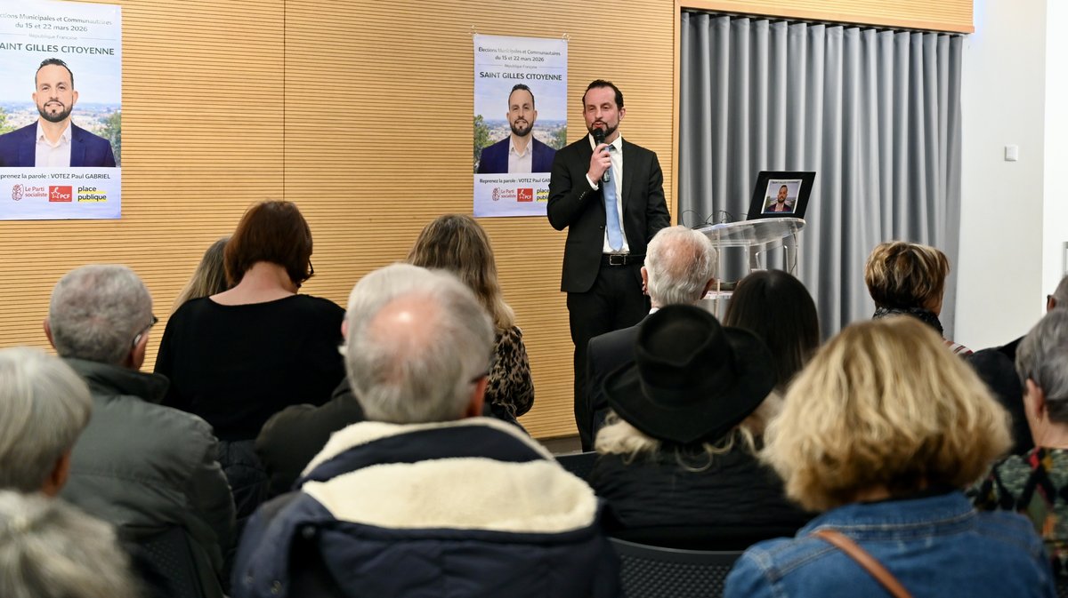 Troisième et dernière réunion publique à Saint-Gilles. Mardi soir - comme diraient les enfants "plus que cinq dodos" avant le scrutin municipal - Paul Gabriel, 44 ans, père de trois filles, ingénieur territorial à la communauté d'agglomération Arles Crau Camargue Montagnette, a présenté son programme. Une soixantaine de personnes était réunie à la salle Jean-Cazelles. Quatre de ses colistiers ont ouvert cette séquence pour expliquer leur engagement aux côtés du conseiller municipal d’opposition sortant. Parmi eux, Ange Prunier, chauffeur routier retraité, installé depuis "des décennies" dans la ville avec son épouse. Il assure connaître "les rues, les lieux et les habitants" et estime que Saint-Gilles "a besoin de nouveauté, d’une autre respiration." Maria Paz Canadas, secrétaire comptable retraitée, née en Espagne sous la dictature franquiste, s'est confiée sur un engagement plus intime, lié à son "histoire familiale douloureuse" marquée par l’exil. "Ce pays, la France, qui nous a accueillis, est devenu le mien", a-t-elle déclaré. Elle fait aujourd'hui le constat "d'un pays fracturé où se développent sans complexe les idées les plus nauséabondes de l’extrême droite", et appelle les électeurs à soutenir une équipe "fidèle à ses valeurs humanistes, plus juste, plus solidaire et plus égalitaire".
