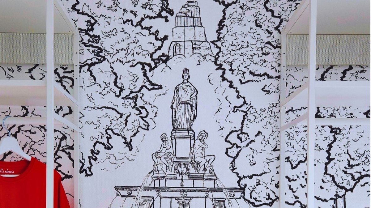 La boutique, située en face du lycée Alphonse-Daudet et qui s’étend sur 70 mètres carrés, possède une décoration unique puisque du sol au plafond, le moindre espace est un hommage à Nîmes. C’est l’artiste Foa, alias Yann Hostingue, qui en eut la charge. On retrouve les principaux monuments de la ville et le lieu est truffé de détails exclusivement nîmois.