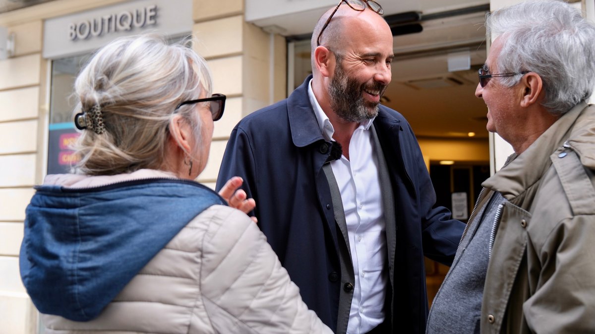 Départ de la Petite Bourse, où le patron, Julien Roussel, fera partie de sa majorité au conseil municipal. Sur le chemin, les sourires s’affichent, les pouces se lèvent, les bises se claquent. « Félicitations, j’ai voté pour vous ! », lance une cliente du café. Près de l’Esplanade, une ancienne camarade de maternelle le félicite. Un passant ajoute : « J’ai pensé très fort à ton père dimanche soir… » Son père, Michel Bouget, employé des télécoms, est décédé brusquement en 2013 à l’âge de 63 ans. À quelques mètres, une jeune fille se lève de la table où elle était assise avec ses amis : « M. Bouget, vous ne vous rappelez sans doute plus de moi, mais vous avez été mon professeur à Philippe-Lamour ! » « Ah ! Ça fait longtemps ! Qu’est-ce que tu fais maintenant ? », répond-il. « Je travaille dans l’événementiel », dit-elle, sourire aux lèvres.