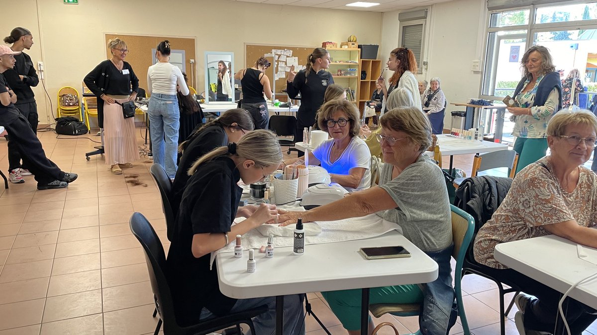 Cette année encore, les étudiants du Centre de formation des apprentis de la Chambre de métiers et d’artisanat de Vaucluse ont traversé le Rhône pour des sessions de manucure, de coiffure destinées aux aidants. « Cette journée est pour vous », lance le président du SIDSCAVAR aux aidants présents.