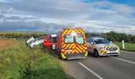 Deux véhicules dans le fossé après un choc frontal. -